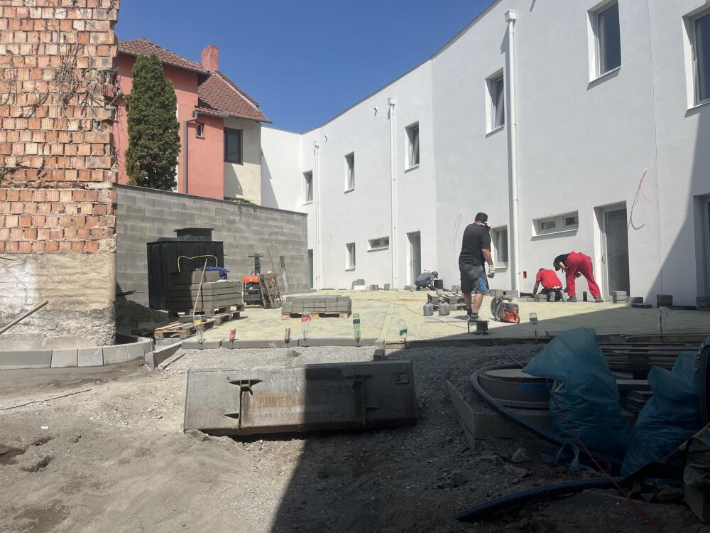 V nejbližších týdnech poté se začalo s doděláním fasády ze dvora a také úprava dvorního traktu a stavba se púřesunula na úpravou venkovního prostranství.Během měsíce se podařilo upravit fasádu ve dvoře a začalo se s úpravou pláně. Vnitřní prostory již dostaly finální podobu - vešekeré obklady, dlažby, omítky, výmalby jsou hotové.