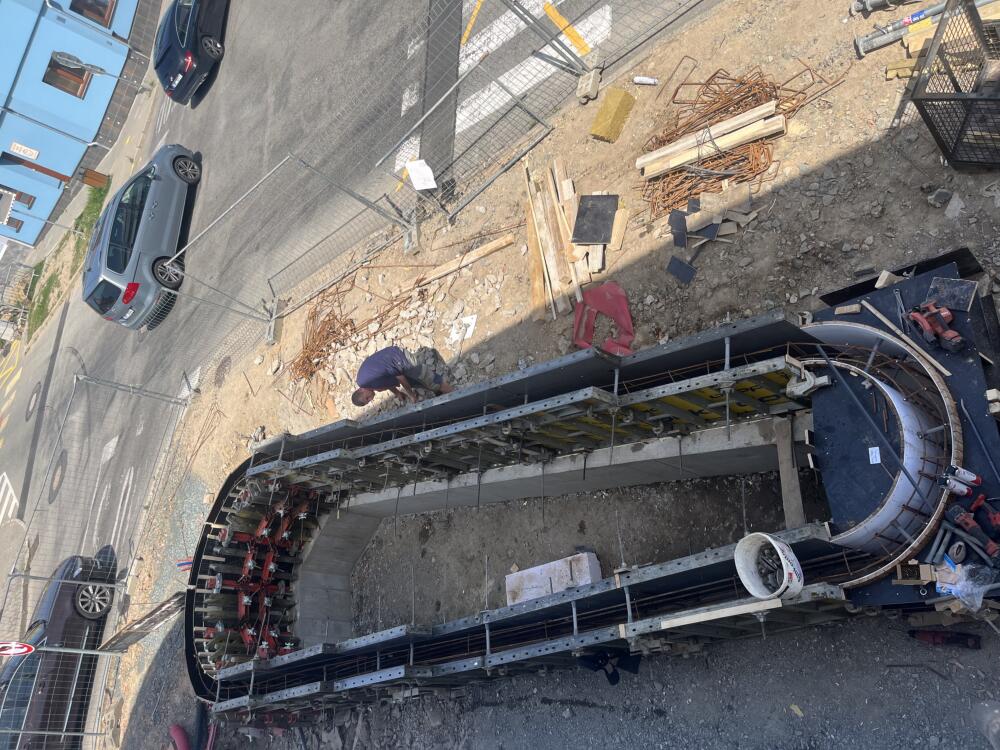 Předání staveniště proběhlo 15. ledna 2024. Během měsíce února 2024 začala firma s demolicí objektů, demoliční práce byly dokončeny v březnu 2024. Na demoliční práce navazovalo pažení stavební jámy a následné zemní práce. Po zemních pracích proběhlo vyvrtání vrtů pro tepelná čerpadla.