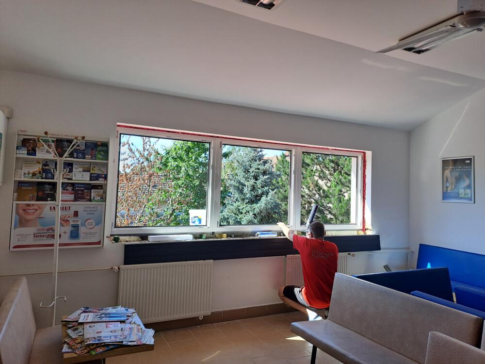 Předmětem díla je zejména provedení stavebních prací spočívajících ve výměně plastových otvorů na zdravotním středisku ve Šlapanicích. Součástí stavebních prací bude demontáž a likvidace starých oken a následná montáž 35 ks nových plastových oken.