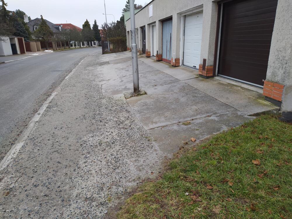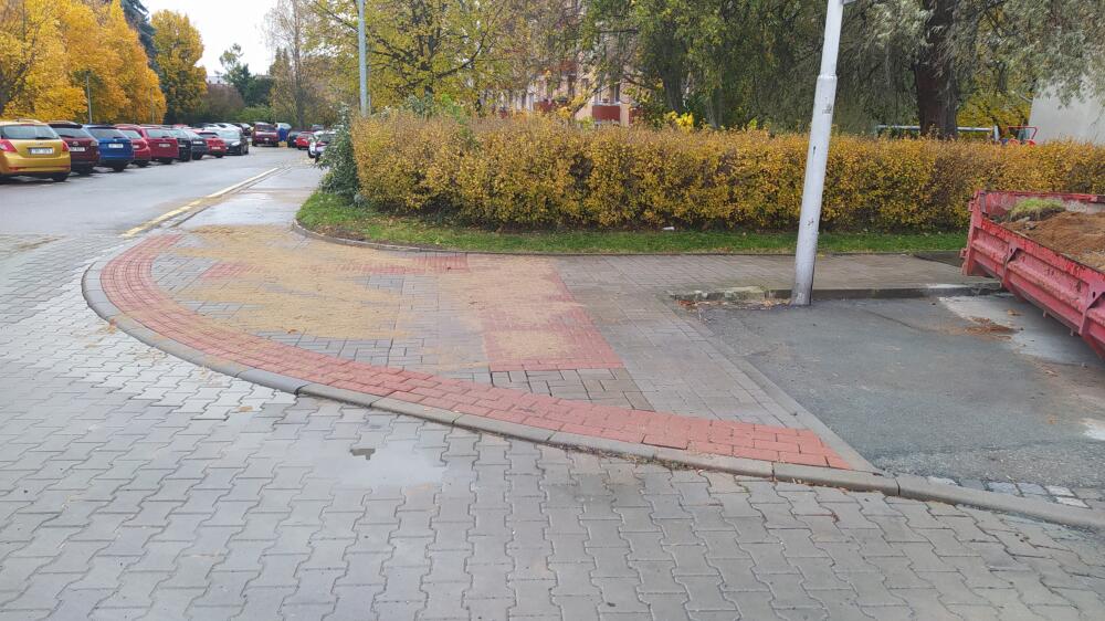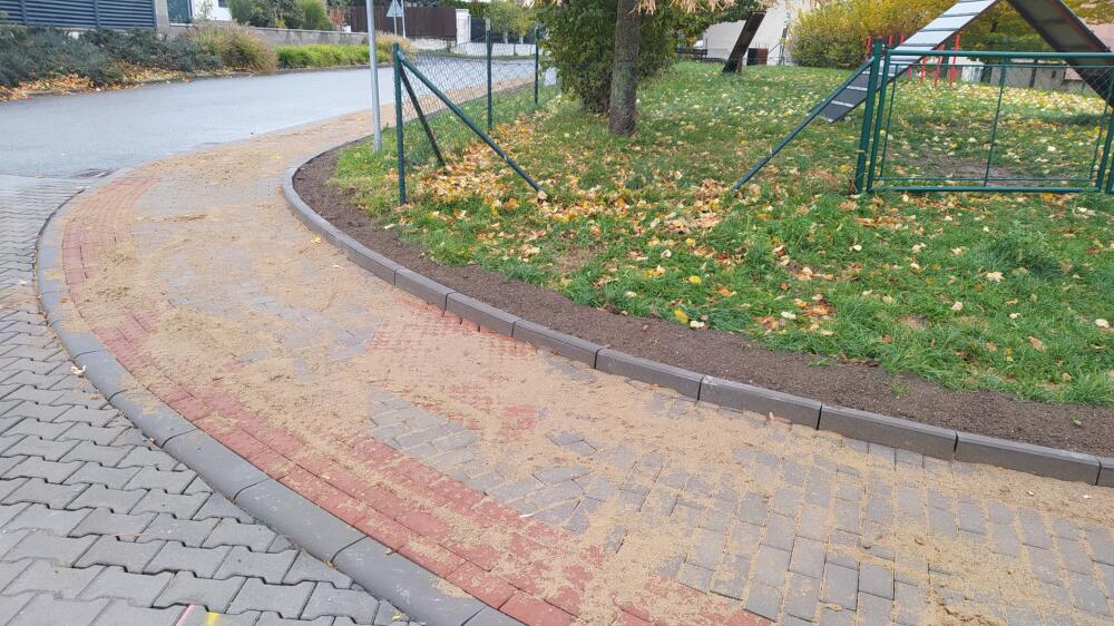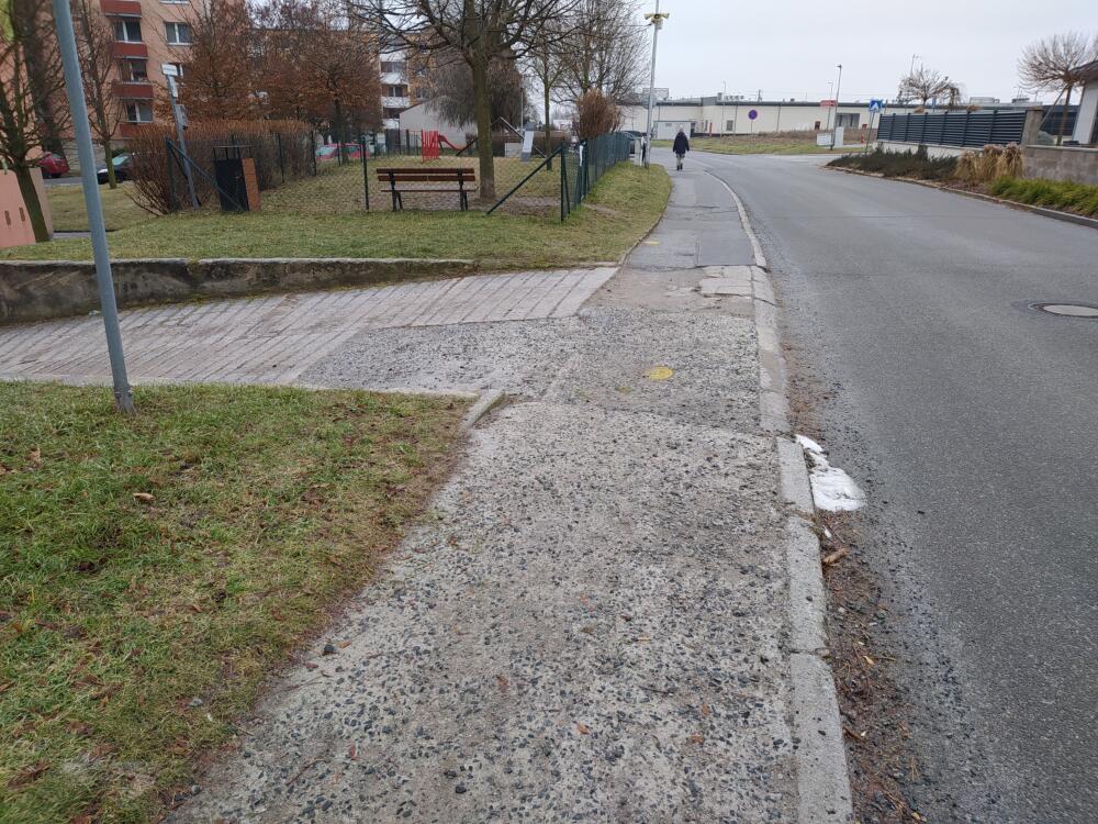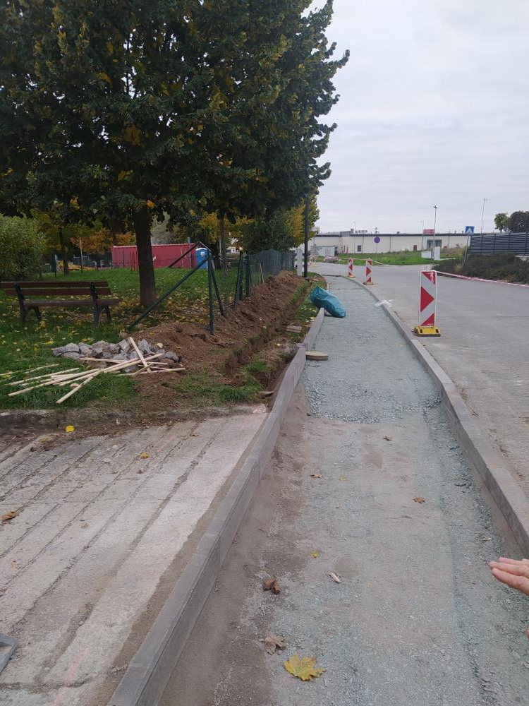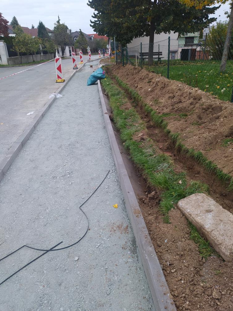 Výkop staré skladby chodníku, obrubníků, odvoz a likvidace výkopku a suti, vybudování podkladních i nášlapných vrstev chodníku a nového obrubníku (osazují se nově chodníkové, nájezdové a přechodové obrubníky, silniční obrubníky budou vyměněny pouze v místech poškození). V místě vjezdů bude provedení úpravy chodníku pro zrakově postižené (šíře pásu 40 cm v barvě šedé – antracit). Dále bude provedena úprava okolního terénu zasažená pracemi souvisejícími s rekonstrukcí.